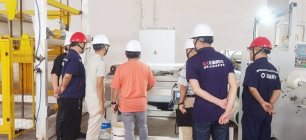 柬埔寨李华集团一行实地参观考察了北新防水广东基地各生产车间、技术中心、展厅等,并就北新防水的产品体系、生产技术工艺、管理规范等进行沟通交流。